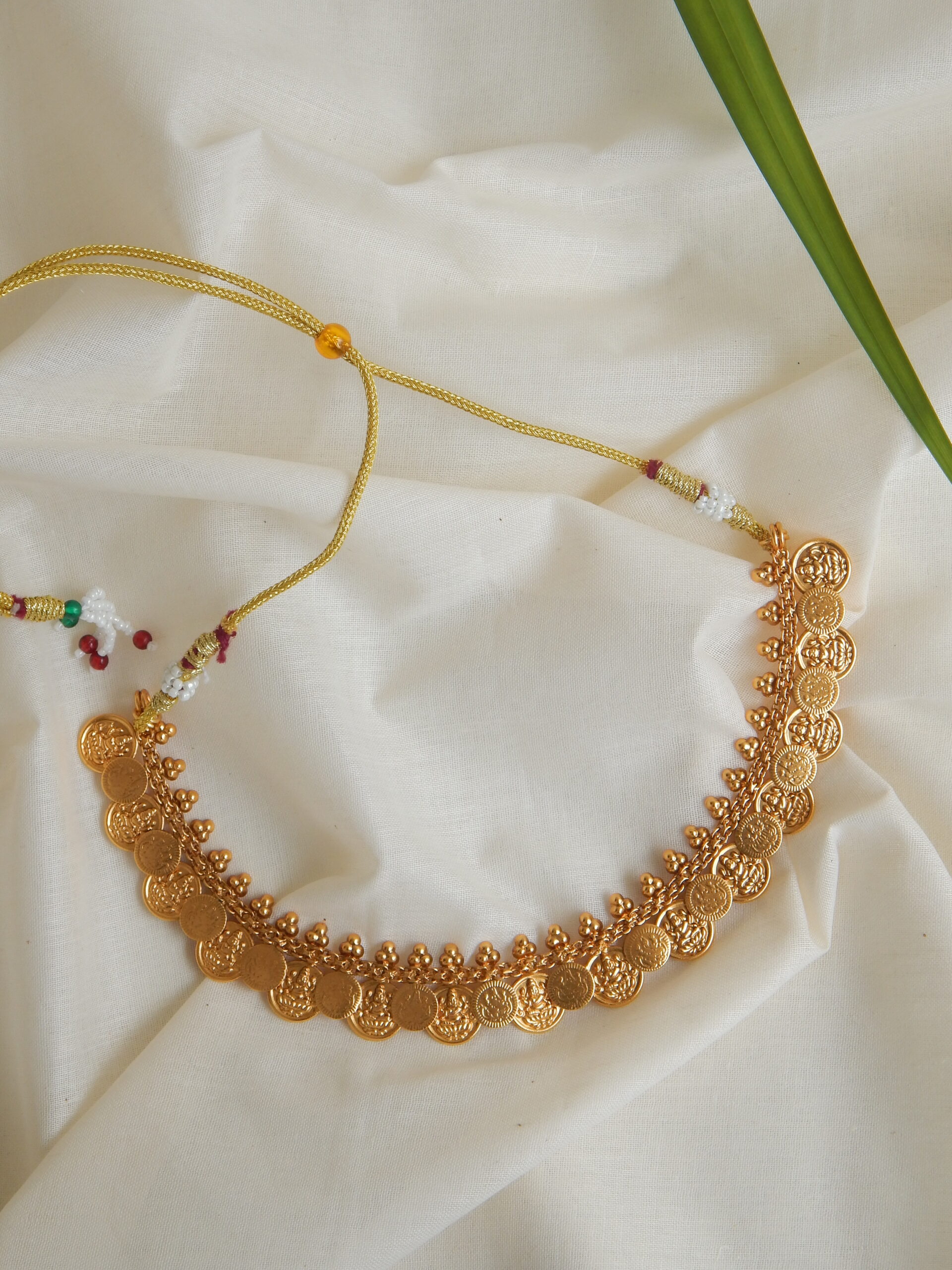 A timeless antique gold necklace with traditional coin motifs and fine detailing — a symbol of prosperity and grace.