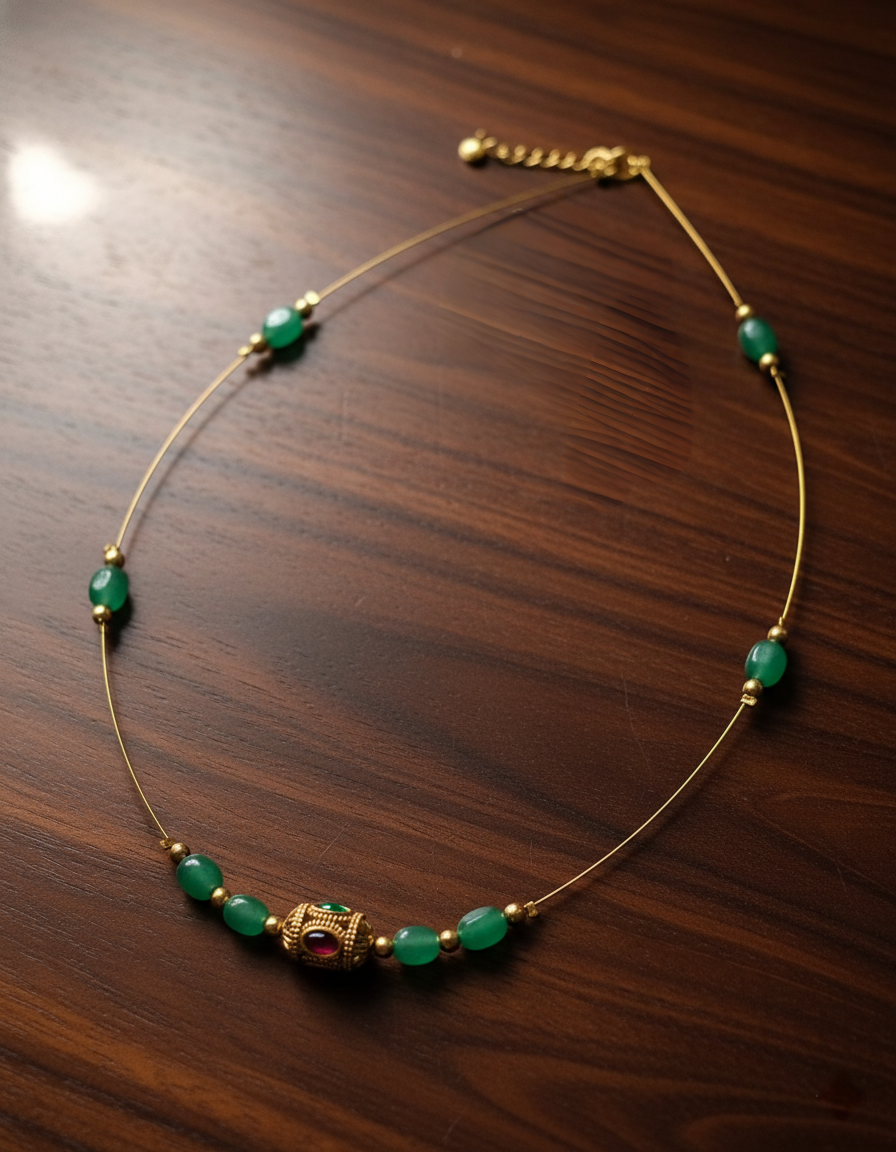 A sleek emerald beaded invisible necklace that adds a hint of color and sophistication to your everyday or festive look.