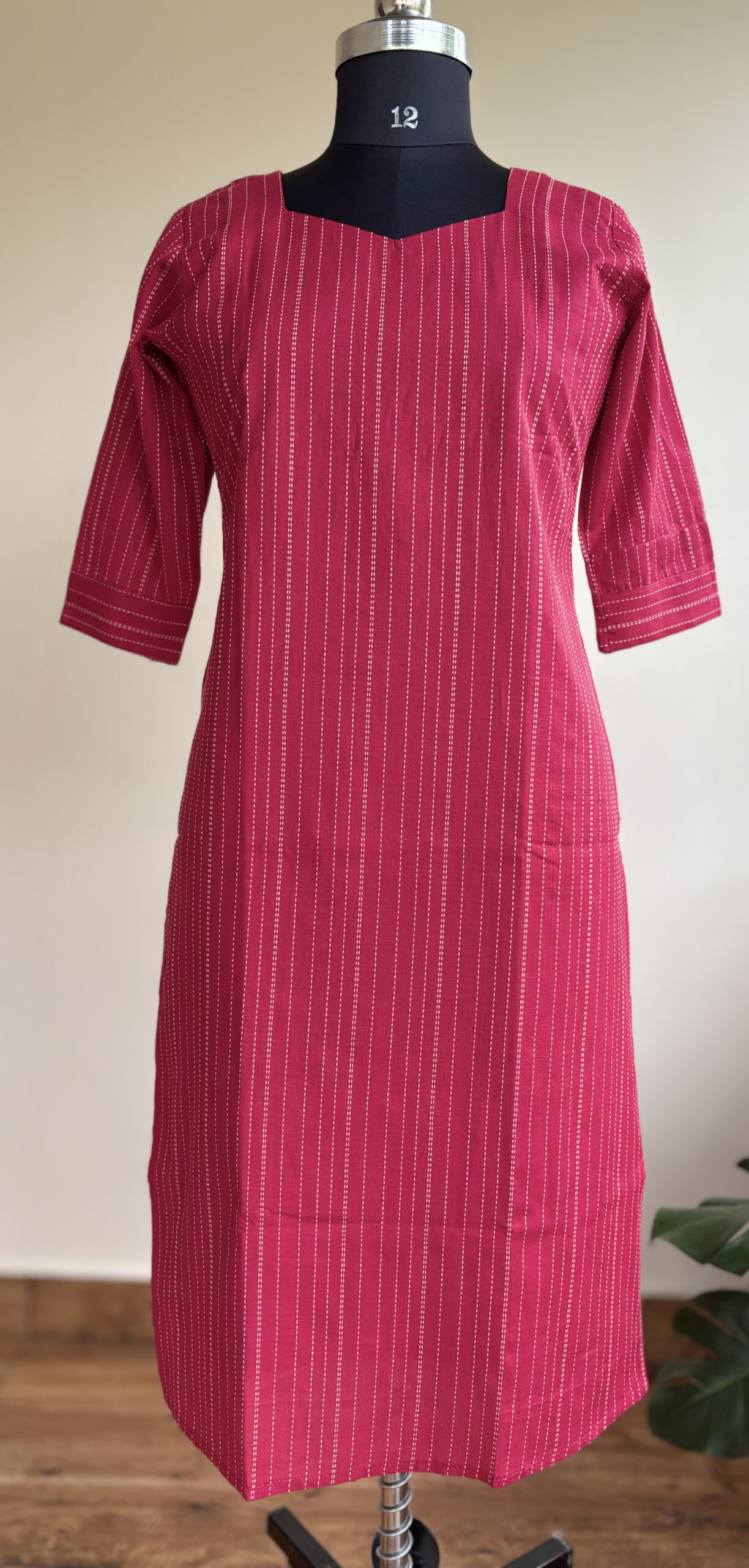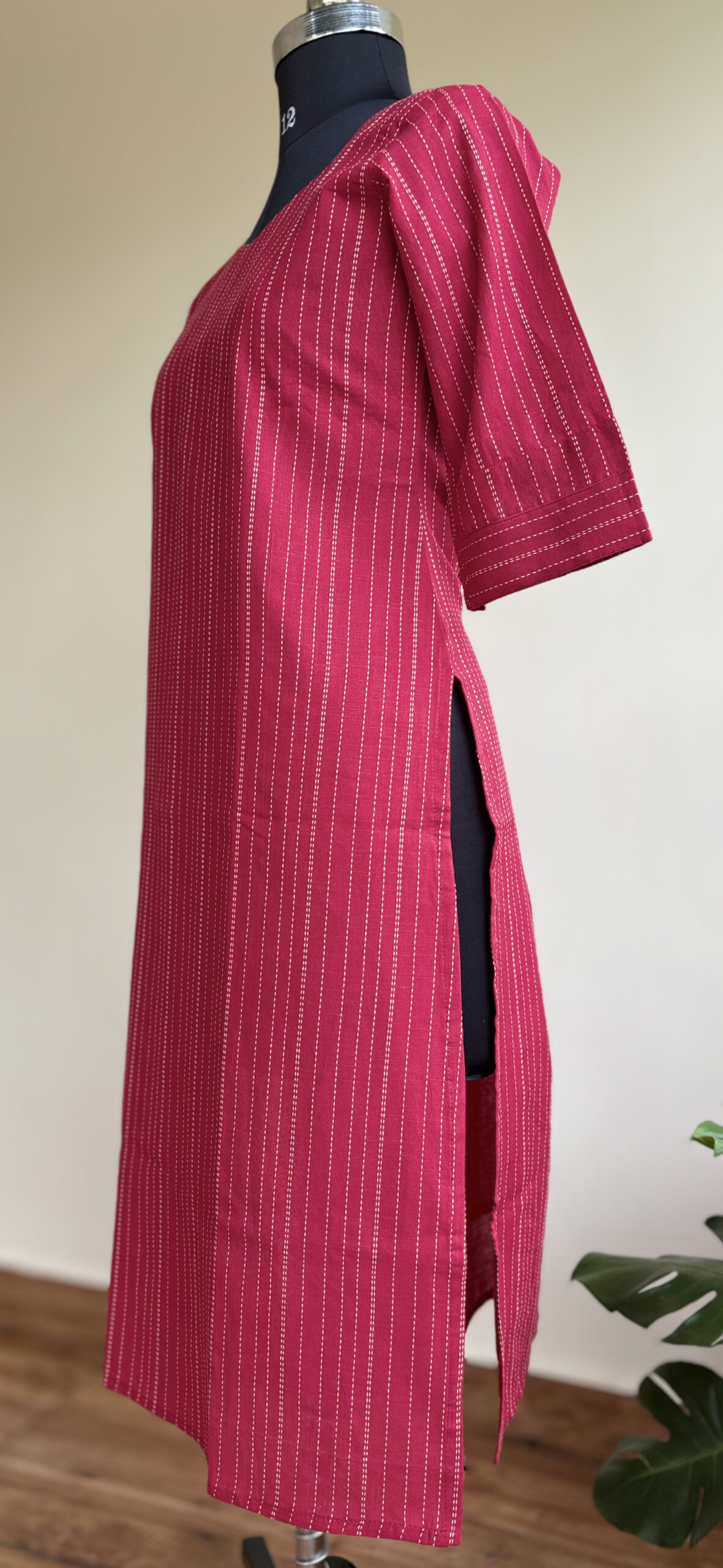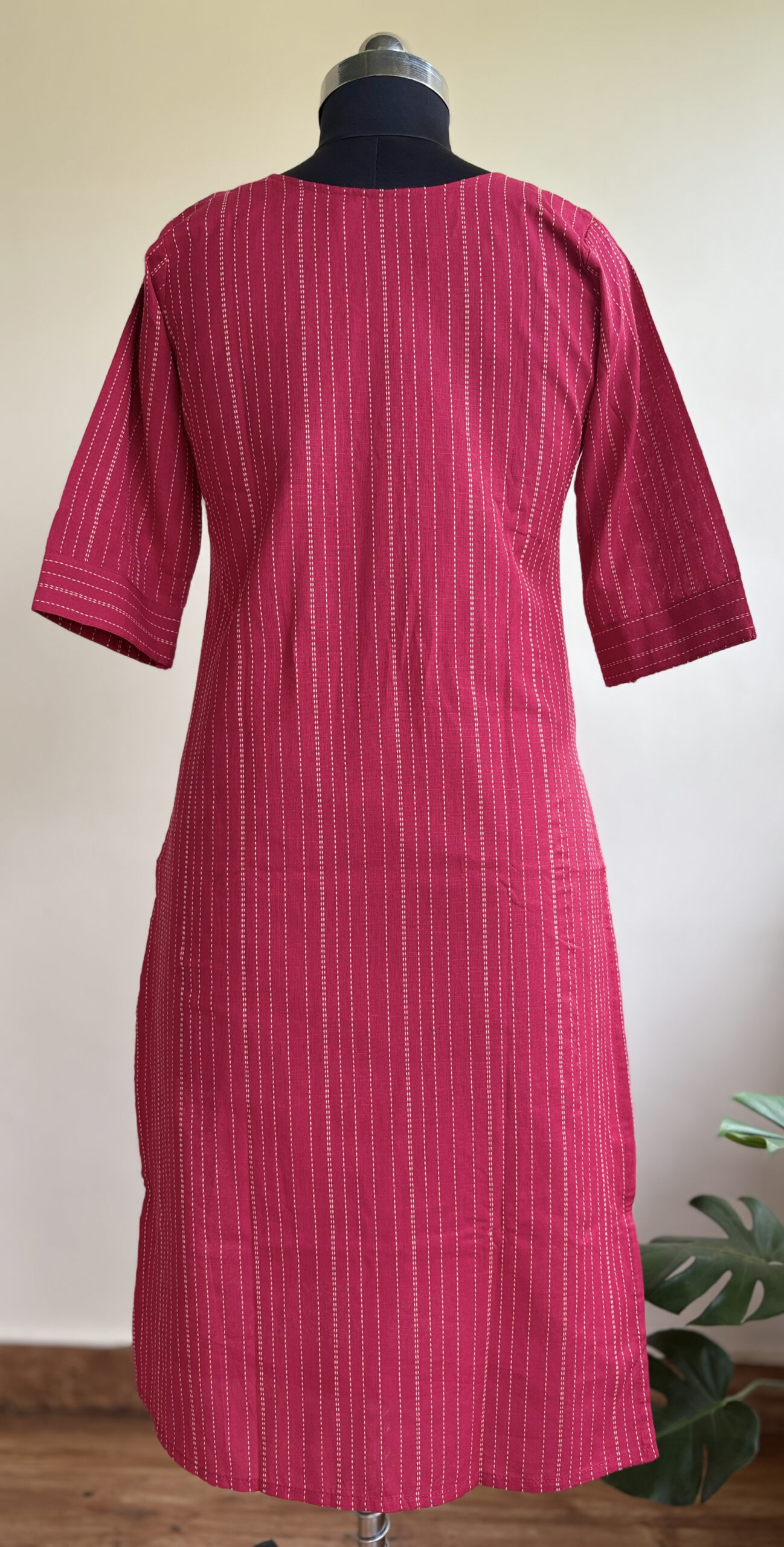 Rich magenta handloom cotton kurti with a solid design. Bright and festive.