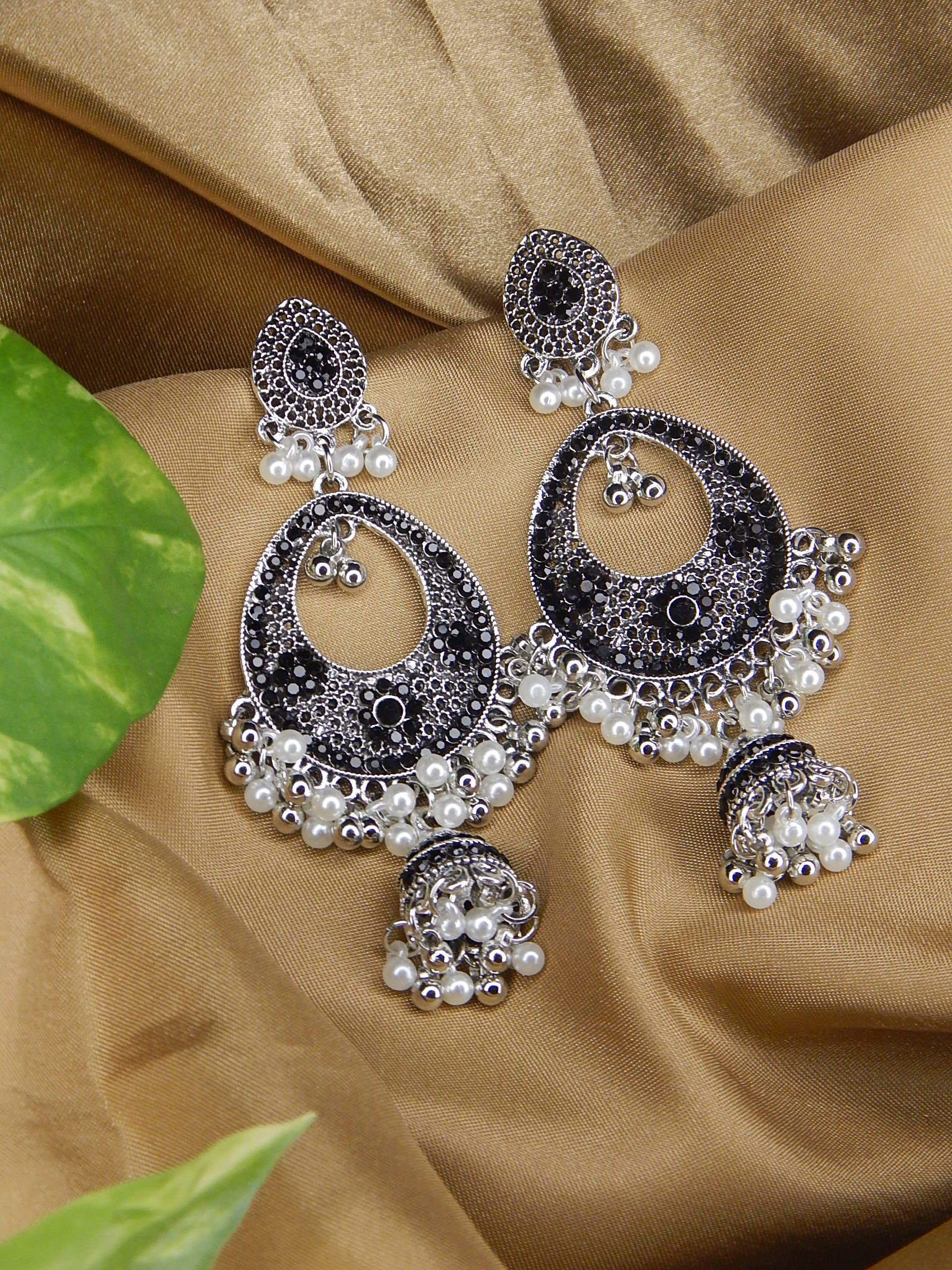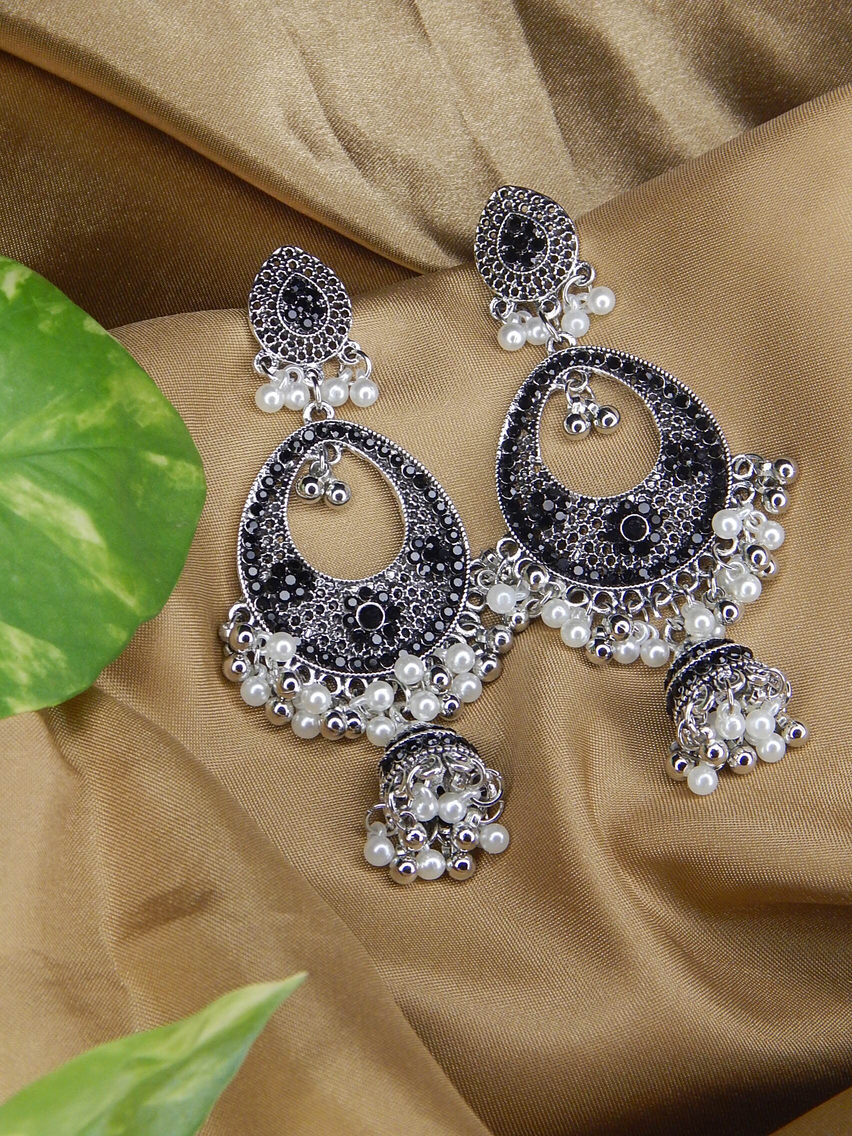A classic statement, the Pearl Grace Oxidised Chandbalis combine oxidised detailing with pearl hangings for a sophisticated finish. Perfect for weddings, sangeet nights, and festive looks.