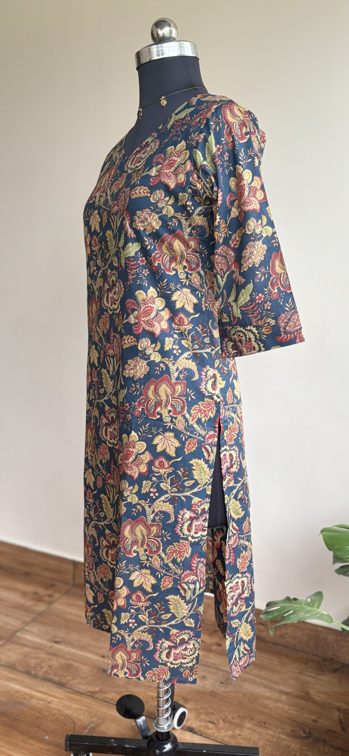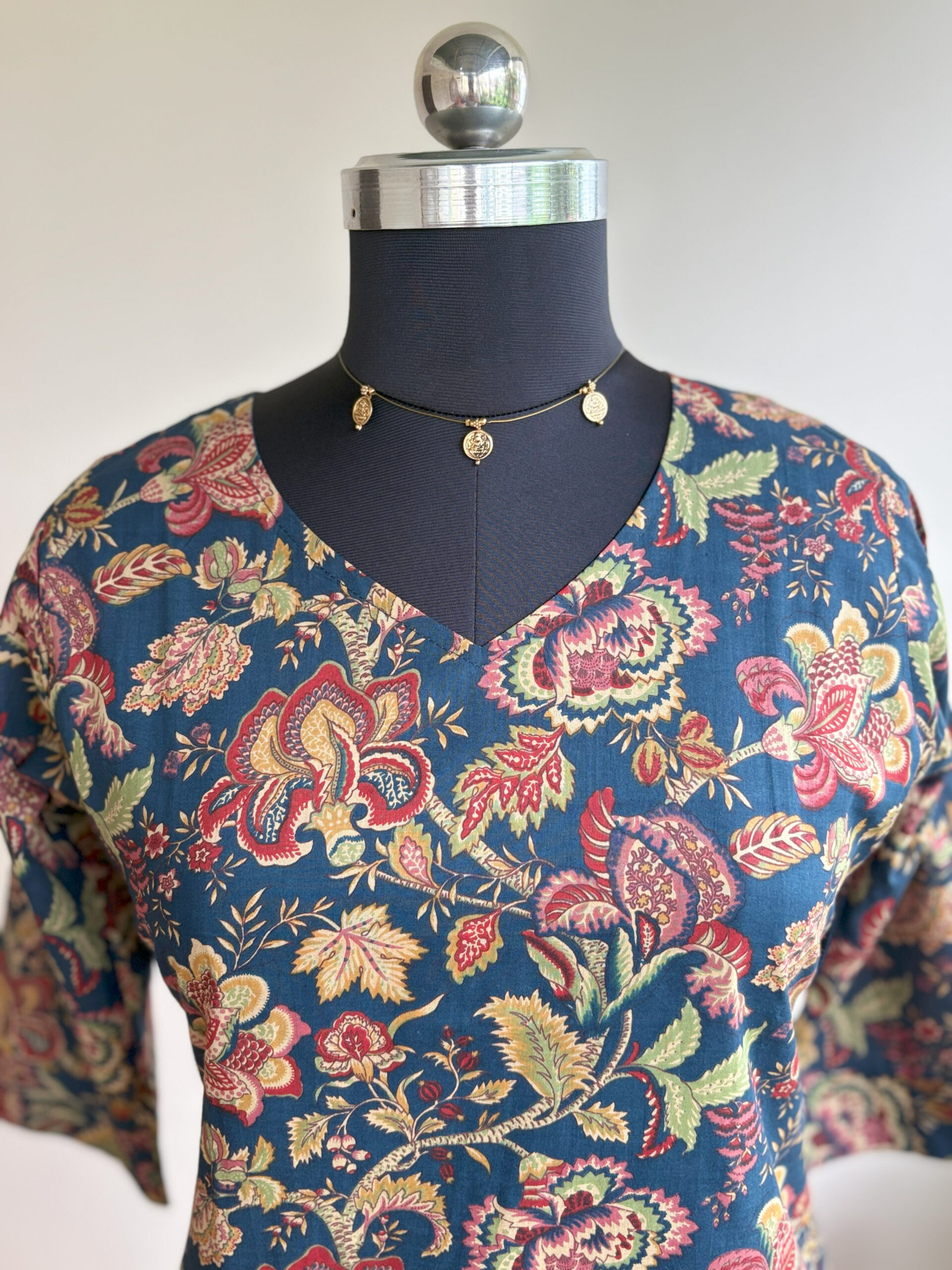 A floral cotton kurti that brings a blend of comfort and elegance to your wardrobe.