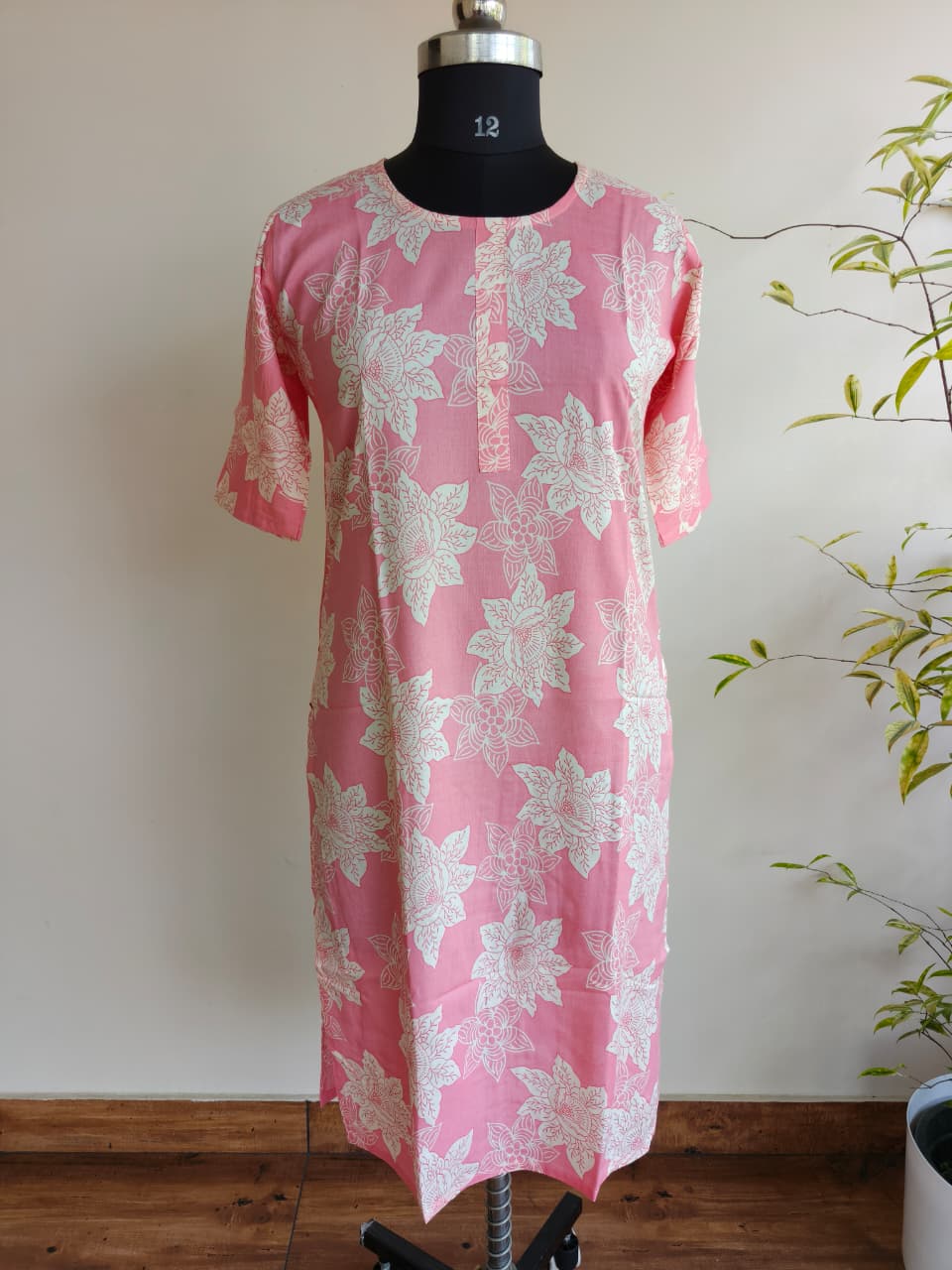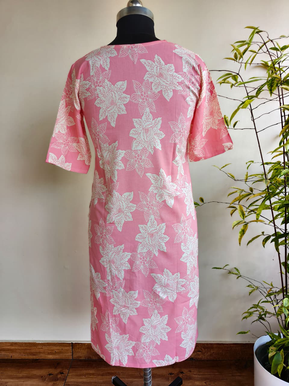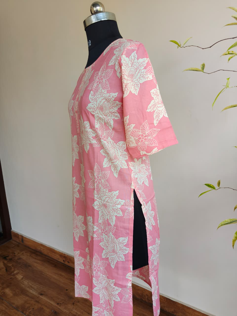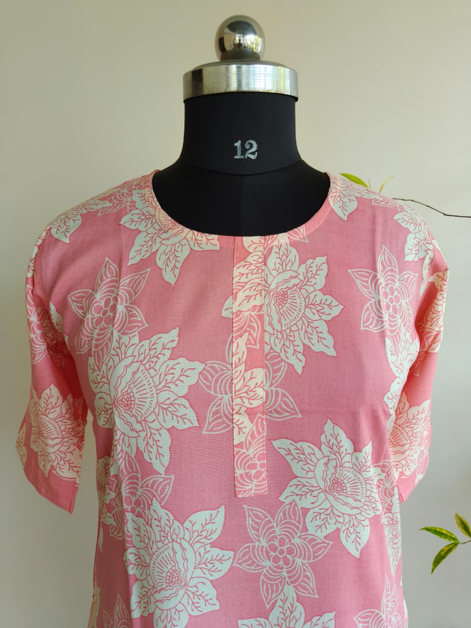 Buy pink printed cotton rayon kurti top for women. Lightweight daily wear kurti in Tata cotton rayon fabric. Top only. Available at ₹299.