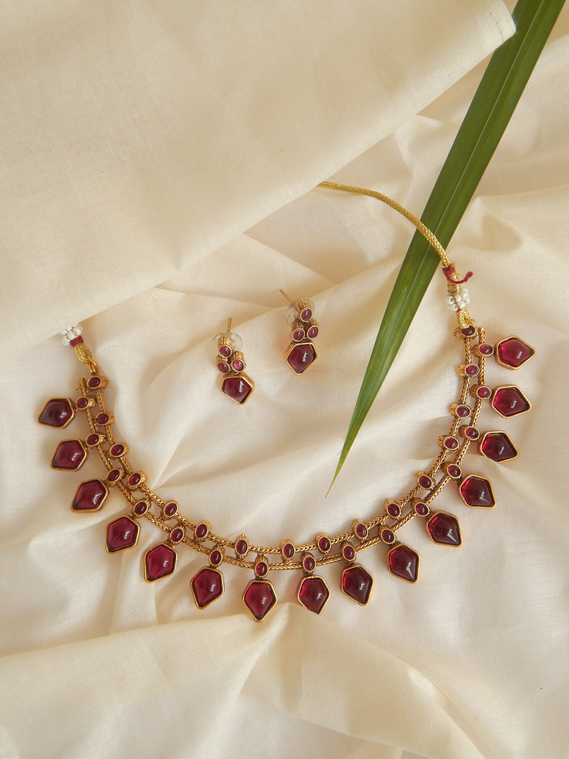 Beautiful ruby stone choker-style necklace with matching earrings. Elegant festive jewellery.