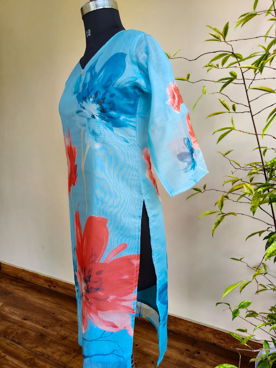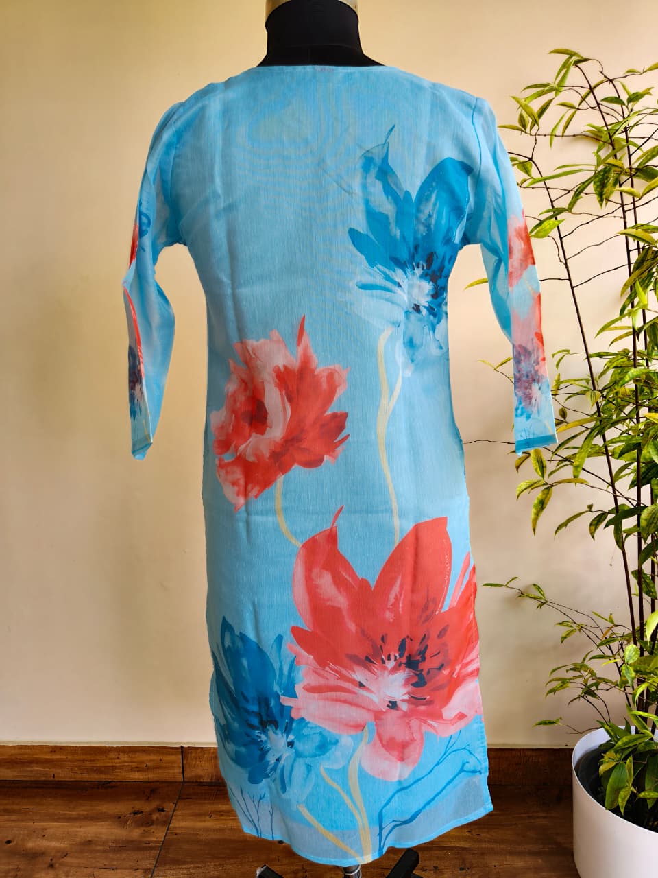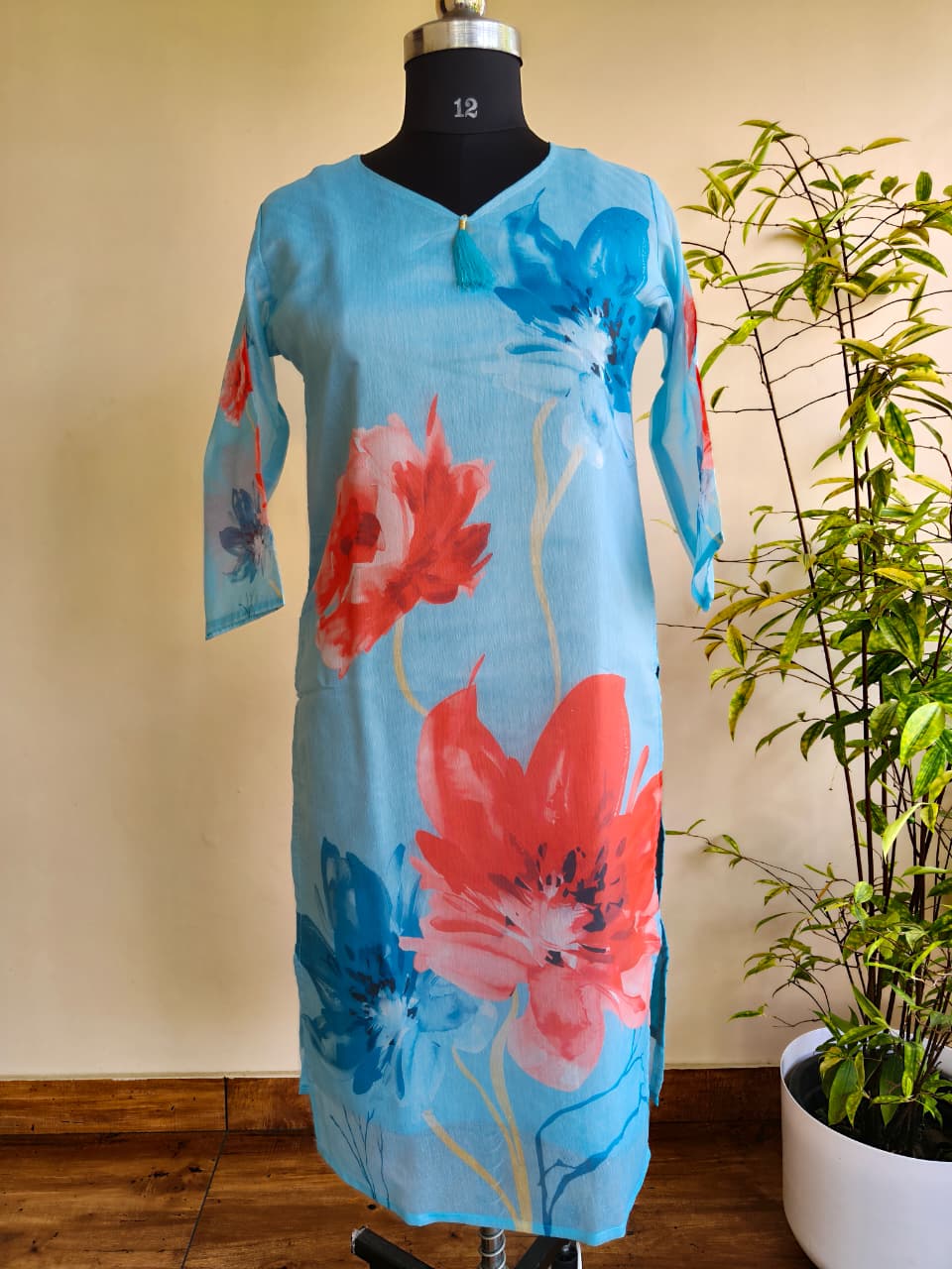 Be the first to review “Sky Blue Floral Chanderi Cotton Kurti for Women with Inner Lining – Lightweight Ethnic Wear”